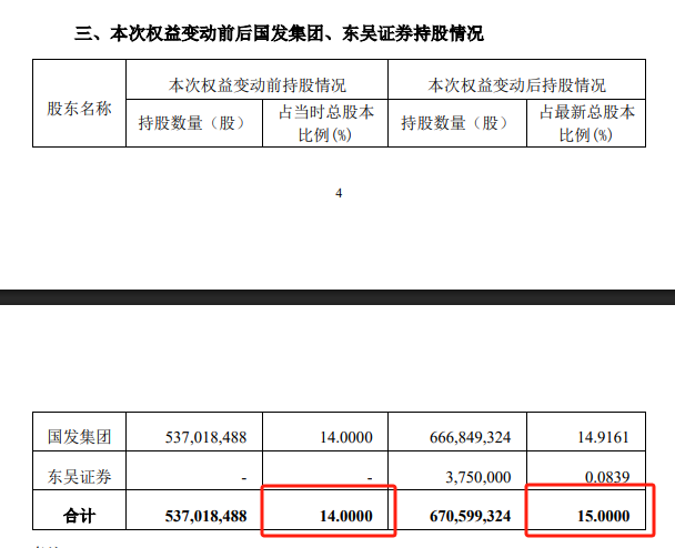 但国发集团并未停下增持的脚步。6月27日,国发集团以自有资金增持苏州银行股份1210.62万股。至此,国发集团及其一致行动人东吴证券在苏州银行拥有权益的股份占总股本的比例从14%增加至目前的15%。
